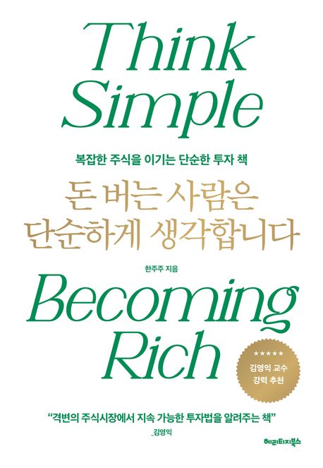 주식투자 잘 하고 계신가요? 오늘은 복잡한 주식을 이기는 단순한 투자 책이라는 부제를 달고 있는 "돈 버는 사람은 단순하게 생각합니다"(한주주 지음, 헤리티지북스 출판사)를 리뷰해 보려고 합니다. 이책은 다른 주식책들과는 다르게 투자에 대한 방법론 보다는 주식투자를 대하는 마인드에 대한 부분이 중점적으로 다뤄지고 있습니다. (따끈따끈한 신간입니다)