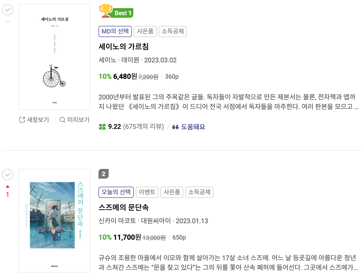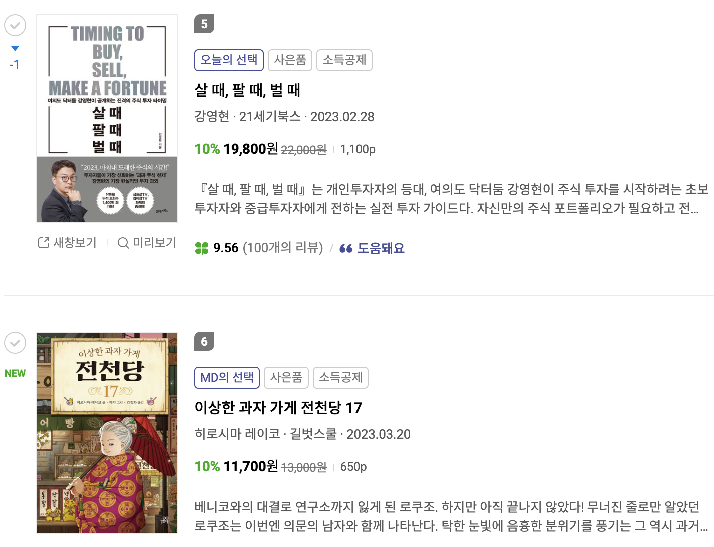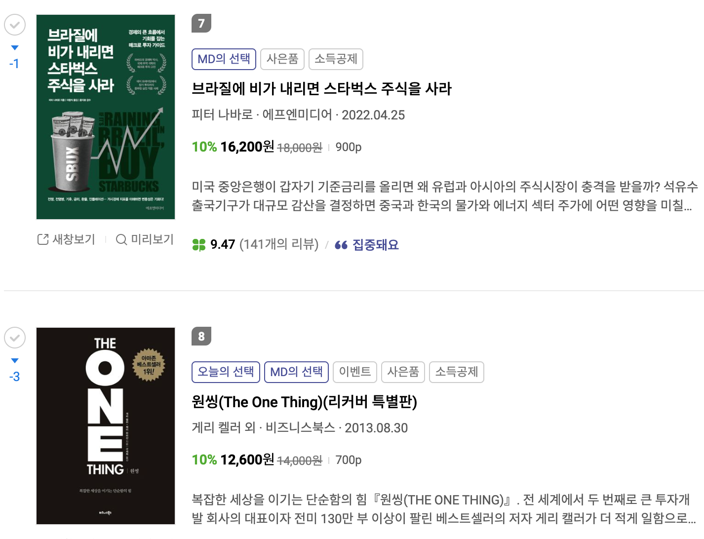 다음주 베스트셀러는 어떻게 변해있을지 다시 찾아오겠습니다.